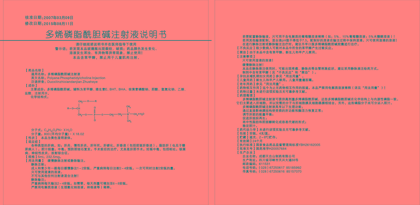 【通用名】多烯磷脂酰胆碱注射液